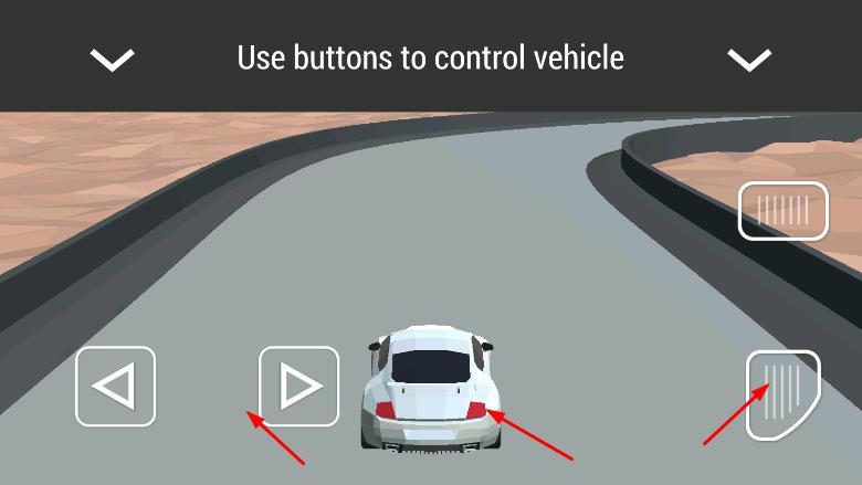 2、进入赛道场景后,根据提示,使用下面的的按钮来控制赛车,左边是控制左右方向,右边是加速与后退。