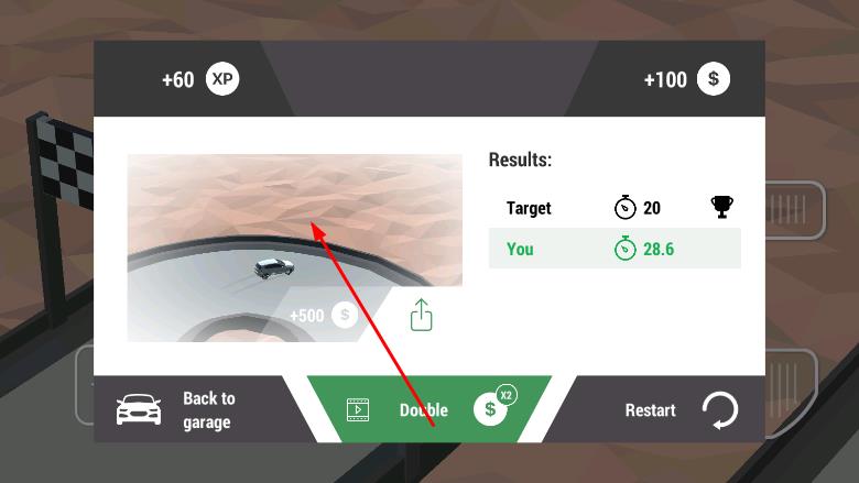 1、进入界面,选择要挑战的赛道,进入在赛道详情界面,会显示该赛道的目标成绩,可获得的奖励,点击Play按钮,开始比赛。