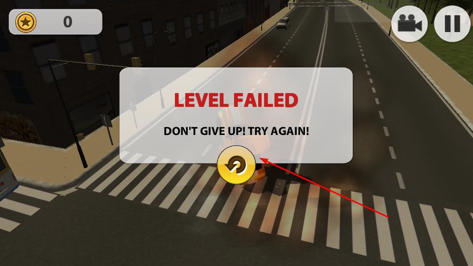 3、挑战关卡时,若操作失误、未达目标,界面弹出LEVEL FAILED关卡失败提示,需要开始新的挑战。
