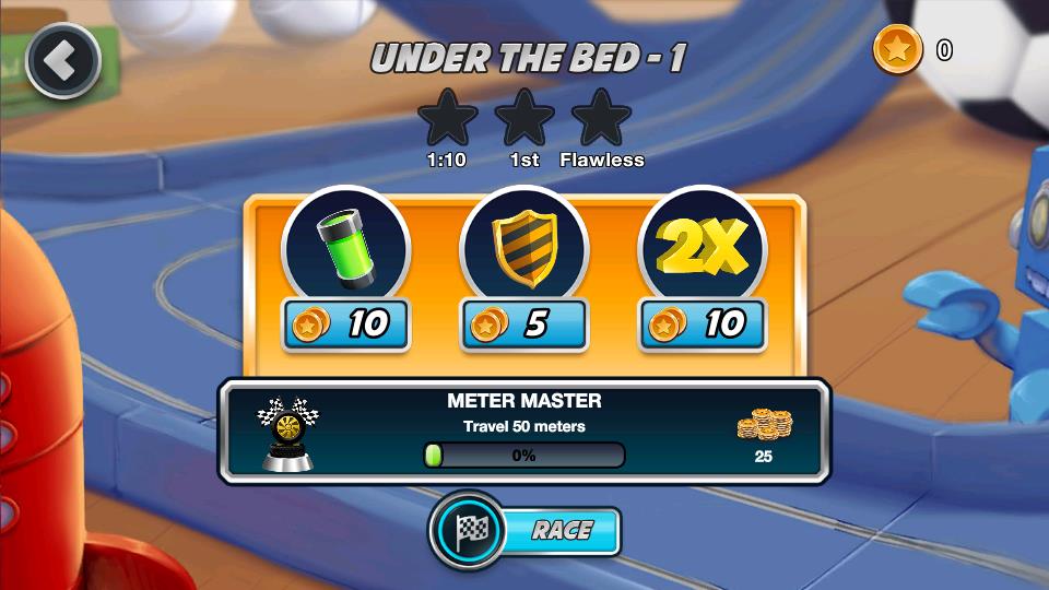 3、完成目标赚取金币:赛道中达成指定目标,如连续漂移、使用能量次数等,可获得额外金币,这些金币用于解锁新卡丁车与赛道,让努力转化为更多竞速可能。