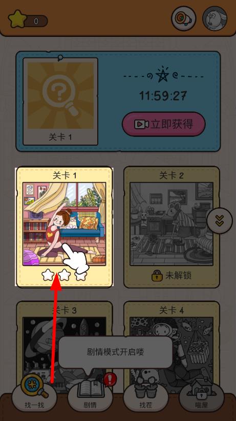 1、进入游戏后选择模式,如经典找茬、限时挑战等,系统会给出两张看似相同的卡通图片,需要仔细对比找出其中的不同之处。
