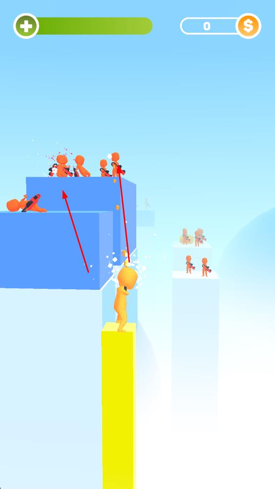 1、射击敌人收集资源:在关卡中操控角色射击大量敌人,消灭路径中的所有威胁,同时收集场景中的资源如提到的钱,资源可用于解锁新内容或升级单位。