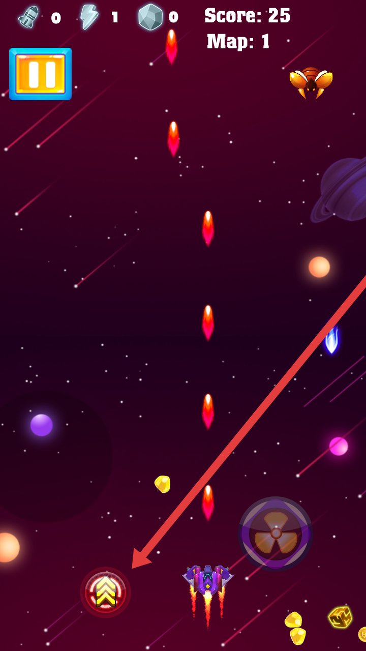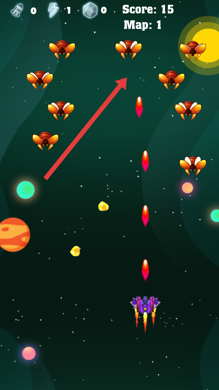 2、在攻击敌人的过程中,也需要注意是否有道具出现,记得控制飞船进行拾取,可以增加攻击的火力。
