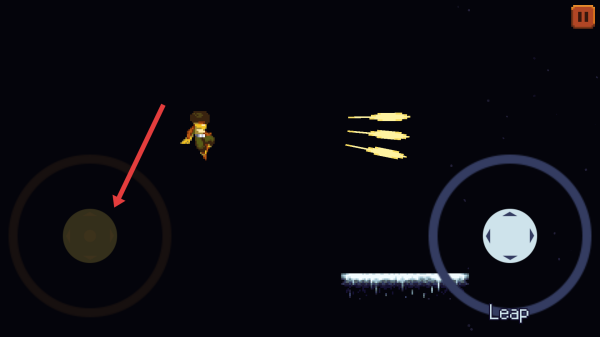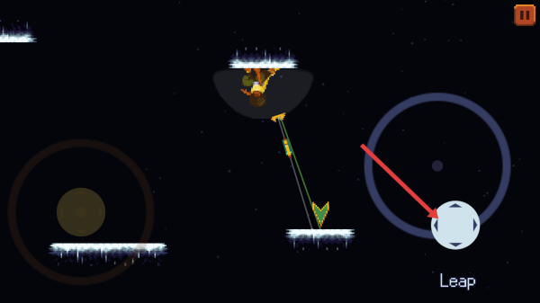 1、开局小人在弹跳,先查看左右按钮的功能,预判子弹轨迹,长按右侧Leap键蓄力,在子弹空隙跳。