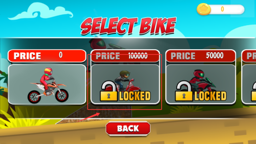 3、车辆商店提供多款越野摩托选择,使用比赛获得的金币可购买性能升级部件。