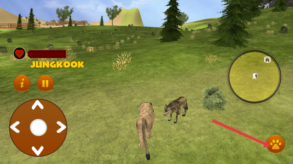 2、优先狩猎弱小的动物前方遇到的狼,点击右下角的爪子的图标,连续点击该技能进行攻击。