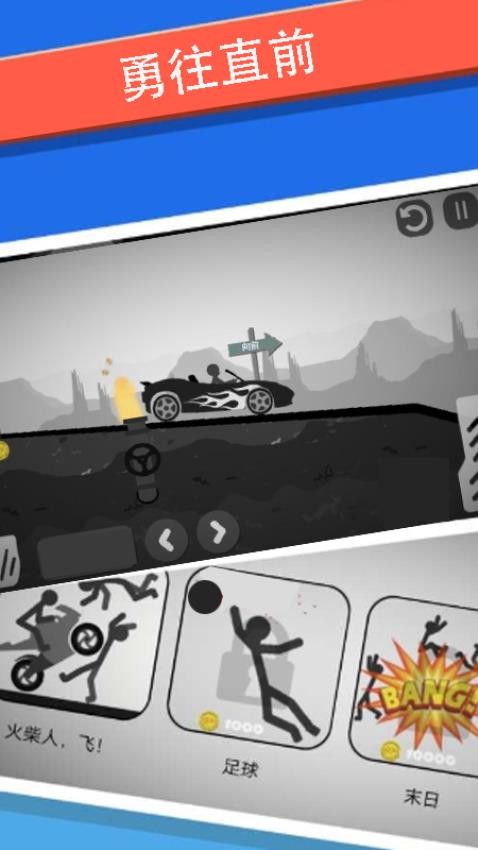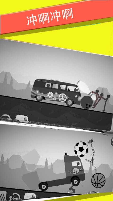 2、控制指定角色驾驶载具,抓住最佳时机加速冲撞,制造连锁反应,让更多火柴人卷入意外事件。