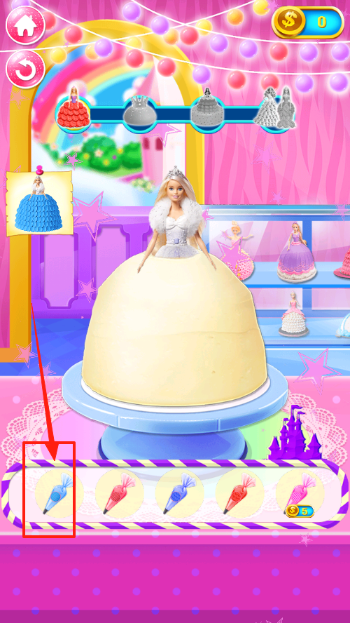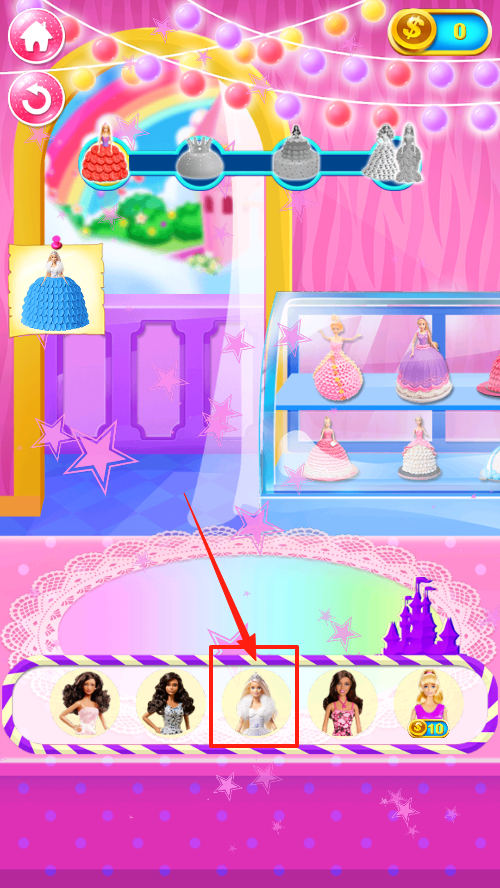 1、点击下方角色选定制作对象,在角色栏中选中目标娃娃,开启蛋糕定制流程,推进制作步骤。