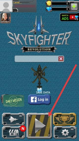 1、在天空之霸者2的游戏主界面,点击中间带有箭头的黄色条纹按钮,创建角色名字,进入多人空战对战。