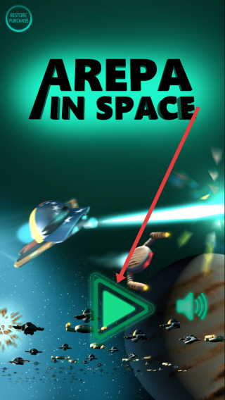 1、在游戏初始界面,通过点击绿色三角形播放按钮,即可启动AREPA-IN-SPACE太空冒险游戏。