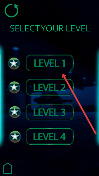 2、在进入到选关界面,按照指示选择点击LEVEL-1,开启太空射击的第一关挑战,展开冒险。