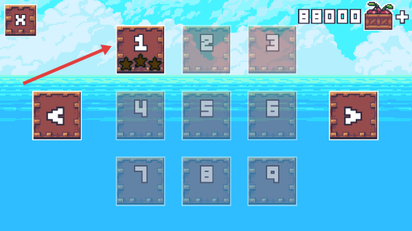 1、主菜单界面点击Play按钮,进入关卡选择页面,借海洋背景与像素风格按钮,开启游戏冒险流程。
