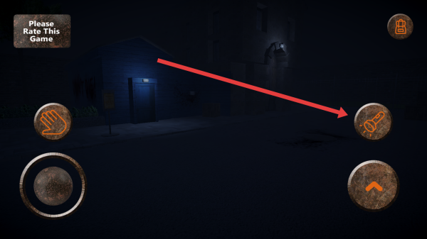 1、在黑暗场景中,点击右侧手电筒按钮,开启照明,看清周围环境,为探索房屋做准备。