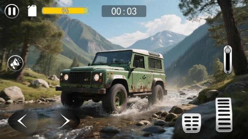 2、遇到复杂路况时要放慢速度,利用越野车的性能通过障碍,避免翻车,确保安全到达终点获取奖励。