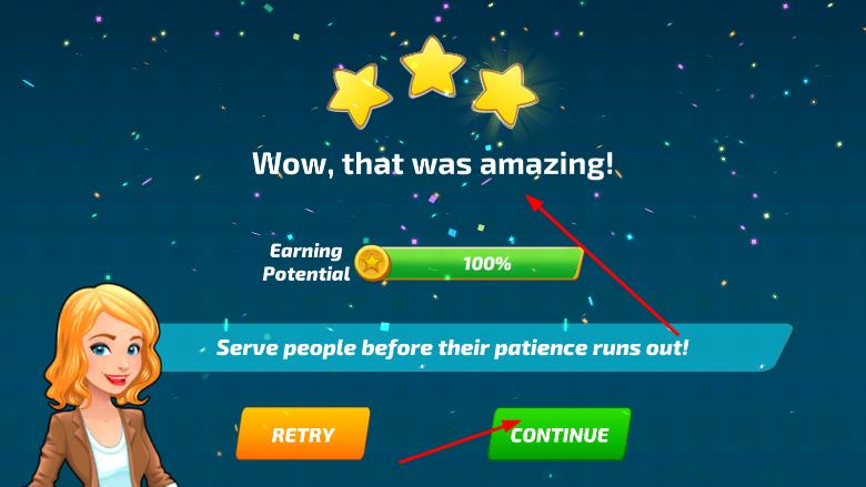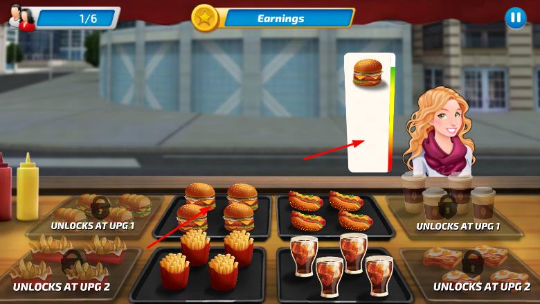 3、根据顾客需求,在餐车操作台界面,选择对应的食物递给顾客,上方显示订单进度,要在顾客耐心值耗尽前完成订单。