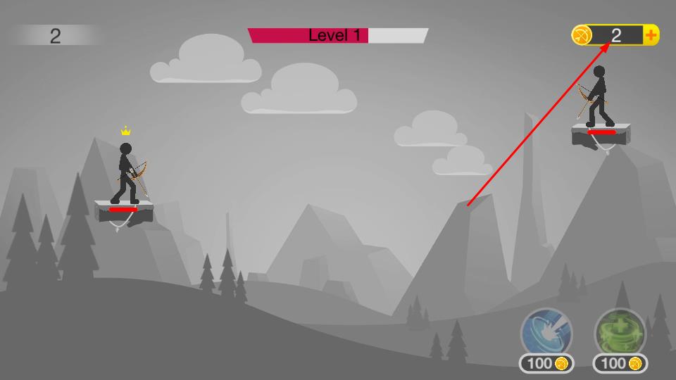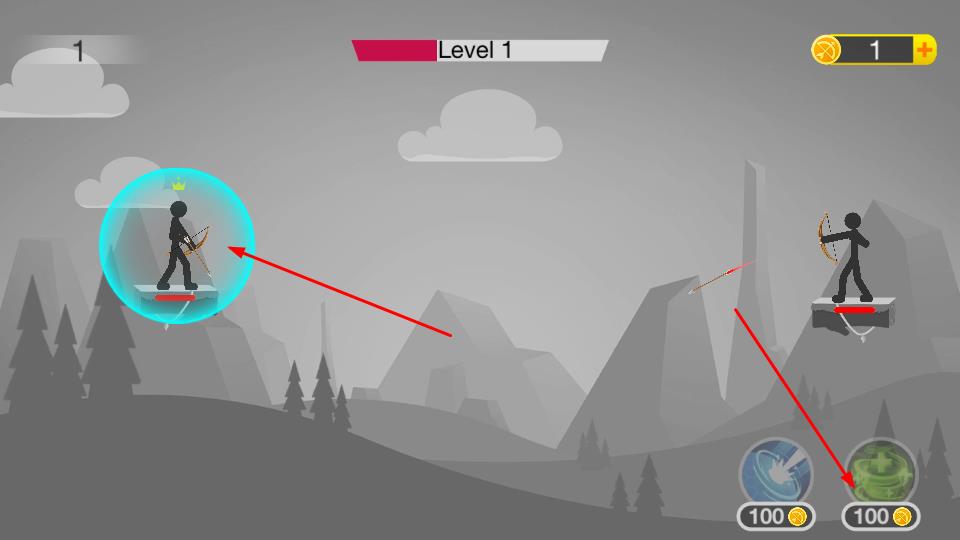 3、成功命中敌人可获取金币,积累金币用于升级技能或购买道具,助力顺利通过Level 1关卡。