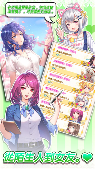 2、解锁多种风格的美少女,甜蜜约会,创造两人的专属记忆,解锁精美CG。