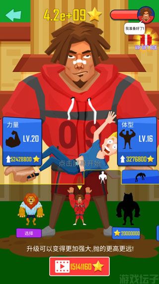 3、抛出人物会飞到空中,人物抛得越高得分就越高。抛出人物后在将要落地时再次点击屏幕,可以将游戏人物再次抛出。累计抛出的越高,得分就越高