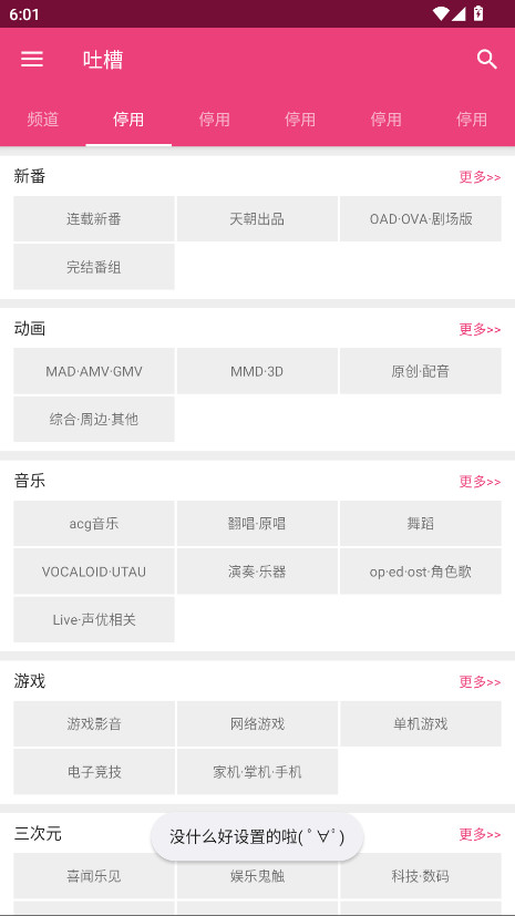1.打开吐槽,可以看到主要有新番、动画、音乐、游戏等板块内容,每一个板块下面都会有小的分类,在这里小编以点击连载新番为例。