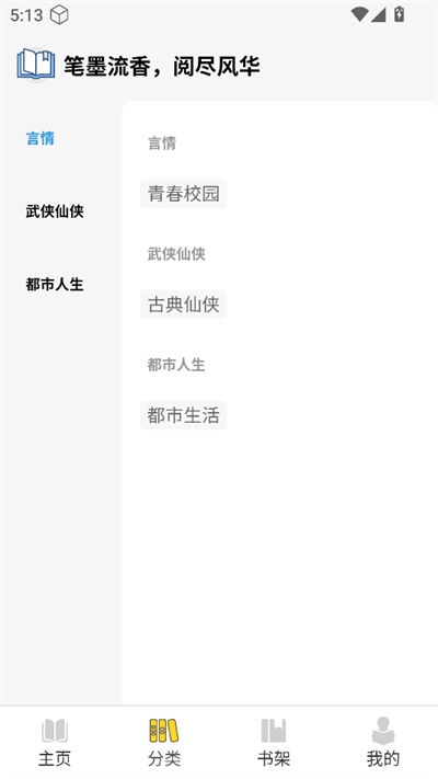 3.在分类页面小说都进行了详细的分类