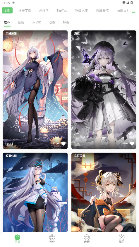 1.打开萌娘壁纸app,进入首页,选择或者搜索自己喜欢的壁纸