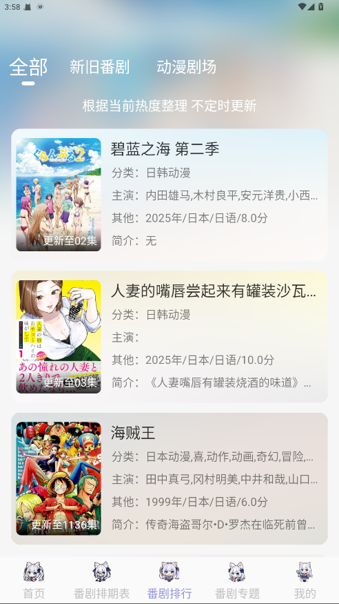 AkiAnime是一款专为动漫爱好者打造的免费追番神器,汇聚海量高清日漫资源,涵盖最新连载与经典作品。界面简洁,分类清晰,支持弹幕互动、收藏追更、离线缓存等实用功能。更新速度快,播放流畅不卡顿,无广告干扰,带来舒适的观影体验。无论你是二次元新人还是资深追番党,AkiAnime都是你的理想选择。