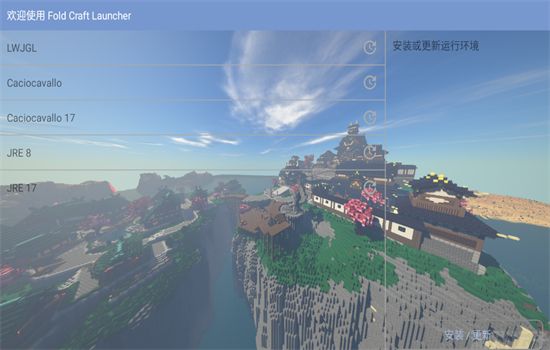 1、打开fcl启动器app,一定要安装或更新运行环境,然后随便取一个名字