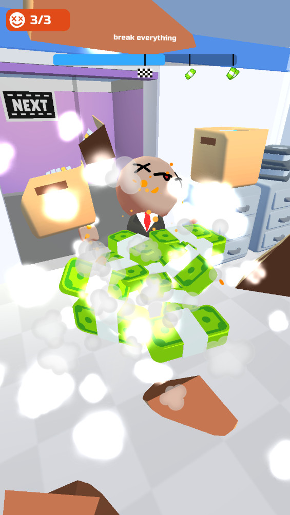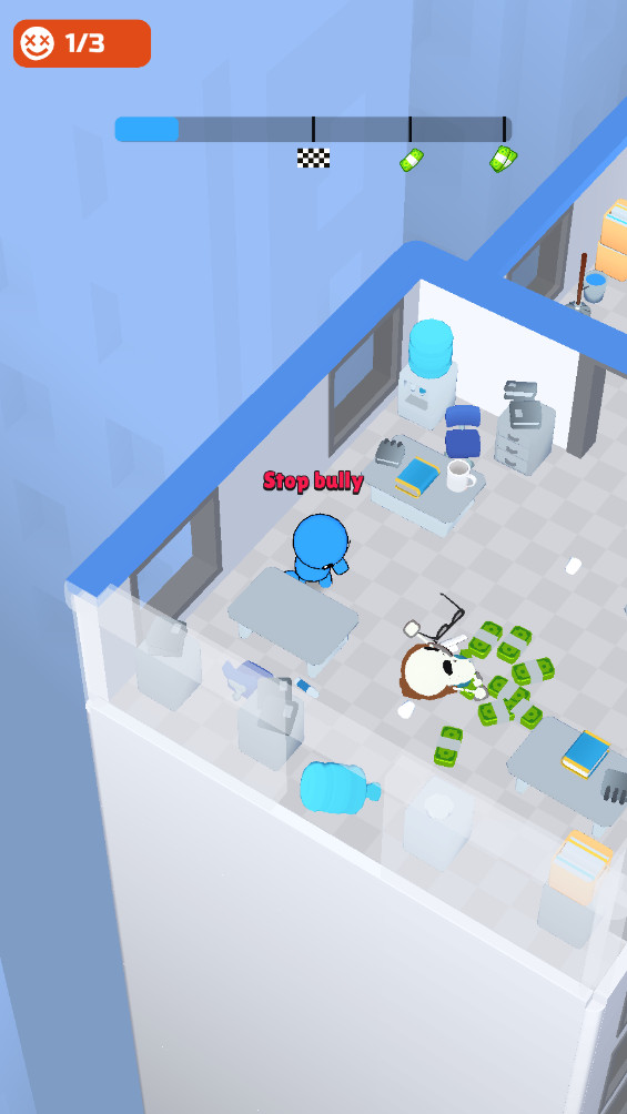 办公室混战房间搅动是一款充满搞笑与解压元素的休闲动作游戏,游戏将玩家带入一个充满幽默氛围的办公室环境,你将扮演一个职场中的反叛者,通过搞破坏、对抗老板和同事来宣泄心中的不满,你可以通过点击屏幕来进行破坏,摧毁办公室内的各种物品、攻击那些让你心烦的同事,甚至教训一下无理的老板。