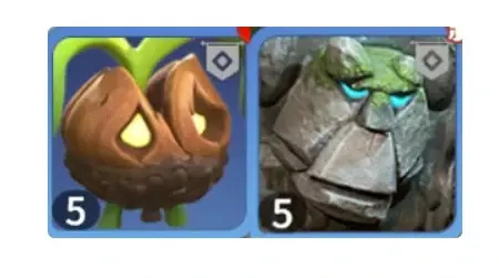 兵种:主力巨力橡果+少量丧气石人。这个组合也是兵种组合中生存和输出最全面的阵容,能应付大多数情况。
