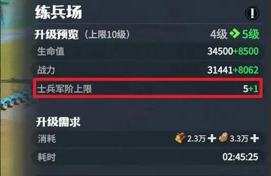 前期开荒士兵是前期开荒最关键的一点,优先升级训练场,可以提高士兵军阶,军阶越高,兵种越强,所在的军团战力越高。