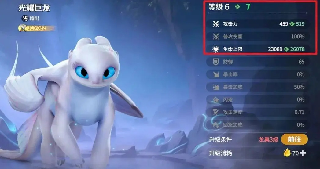03巨龙养成前期开荒期,巨龙也很重要,跟随章节任务,防守黑翼军团会给巨龙升级所需要的材料,培养巨龙升级,可以增加前期战力。