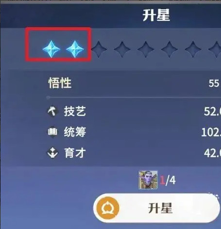 已经任命的内政官通过消耗多个本体材料进行升星,每个星级的提升对应的技艺,统筹,育才数值的提升,星级越高数值越高,对应的内政官技能效果越好,战力也会相应提升。