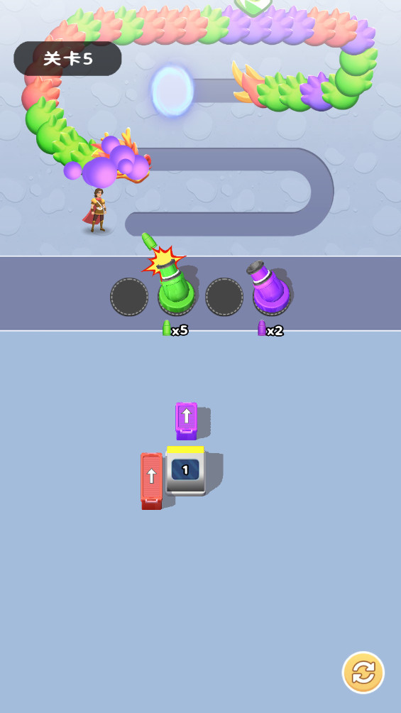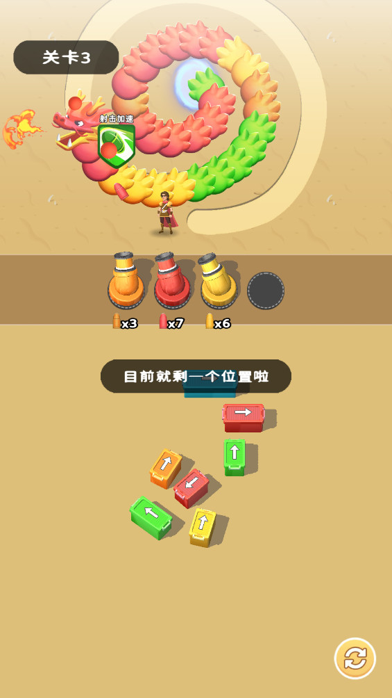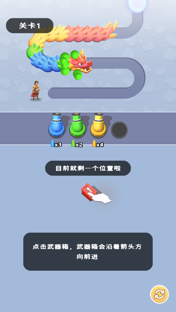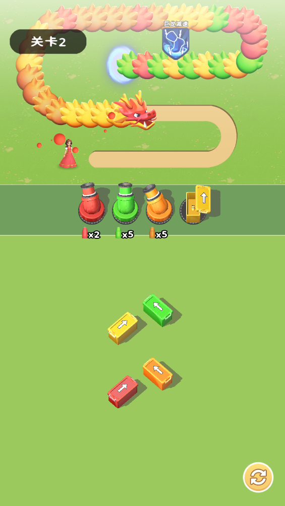 2.选择和巨龙身体颜色一样的公交车出车可以进行消除。