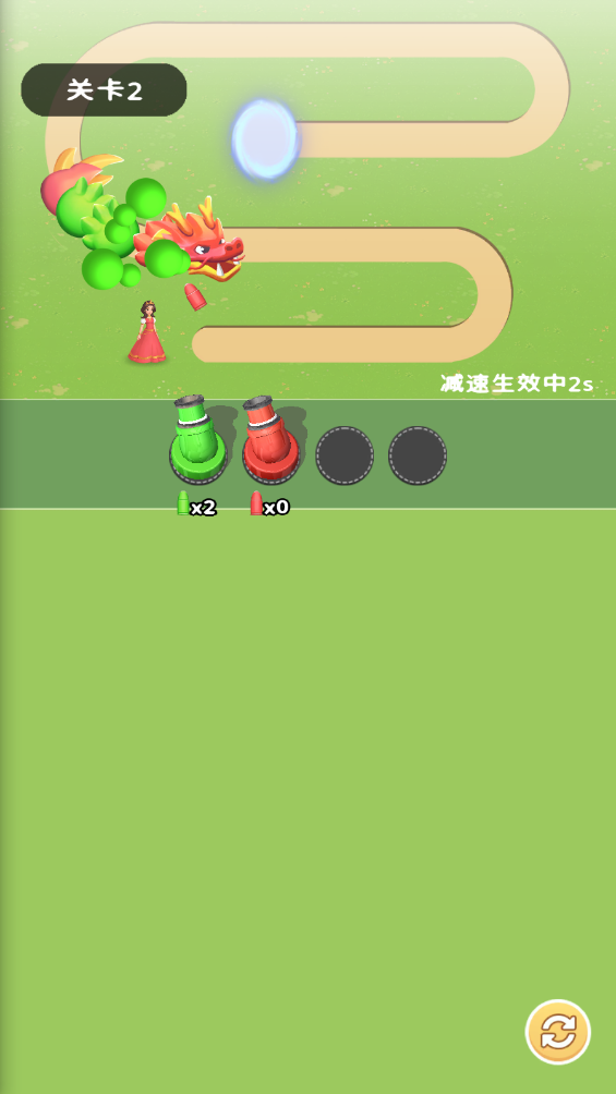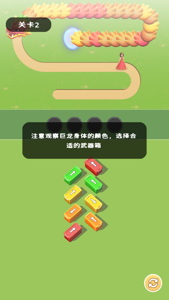 3.巨龙会不停向前移动,尽量先从前面开始消。