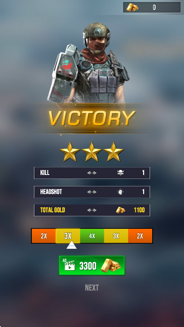 5.击杀成功之后会获得相应的奖励,然后点击【next】继续游戏。