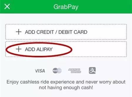 回到Grab Car 页面后,就可以看到支付宝添加成功啊!