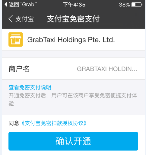 阅读同意《支付宝免密扣款授权协议》后,点击“确认开通”