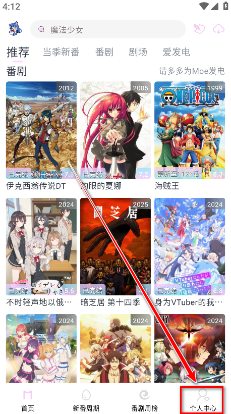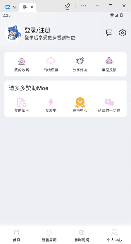 1.打开Moefun,点击右下角的个人中心。