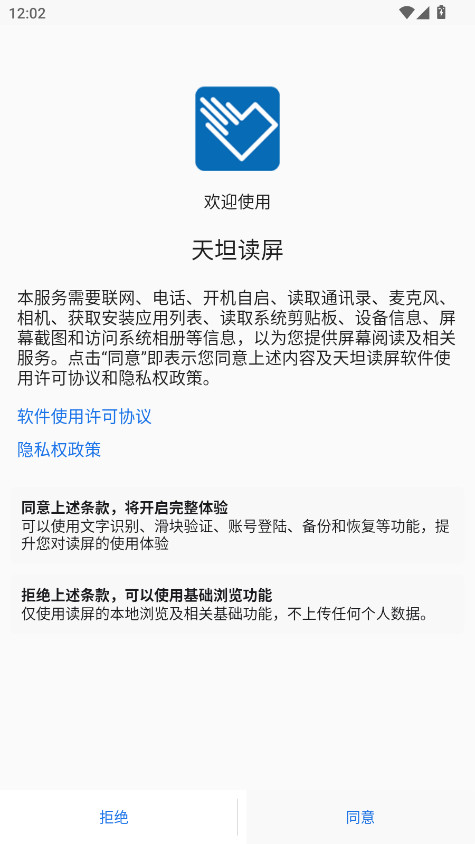 天坦读屏app是一款专为视障用户和阅读困难人群量身打造的安卓屏幕阅读器!它将屏幕上的文字信息转化为清晰的语音朗读,让新闻、社交媒体、电子书等一切数字内容都能通过听觉轻松获取。我们致力于打破数字鸿沟,让信息触手可及,让每一位用户都能平等、便捷地感知和探索这个精彩的世界,享受无障碍的智能生活!它可以把手机屏幕上的文字,不管是新闻推送、微信聊天记录,还是小说电子书,都能用清晰的语音读出来。它让科技真正变得有温度,帮助更多人融入数字生活。强烈推荐给所有关心无障碍、想让世界更美好的朋友们,天坦读屏,让信息不再有盲区!