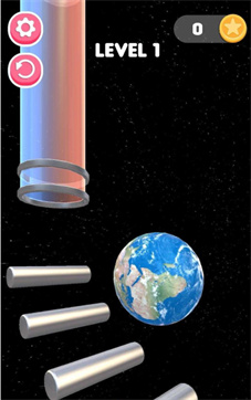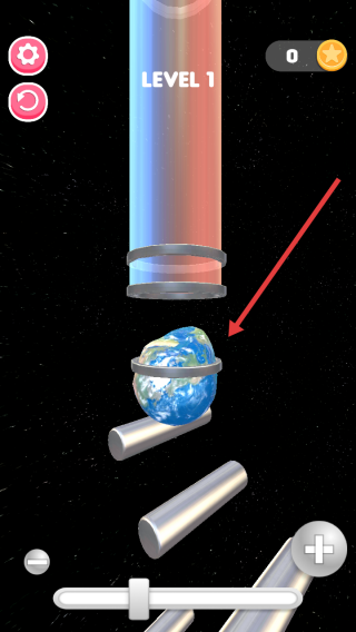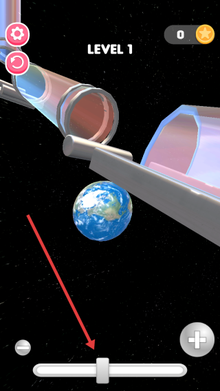 1、在LEVEL1场景,操控底部滑块做好准备,引导被金属环固定的地球,开启通过管道下轨道的挑战流程。