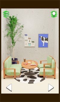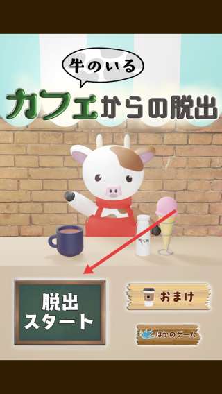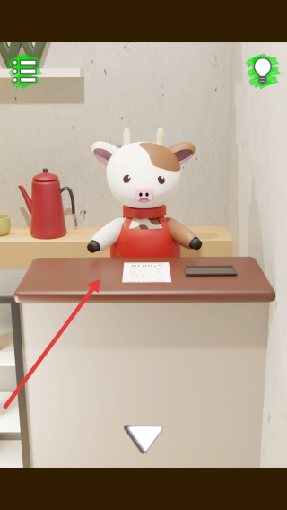 1、点击初始界面黑色黑板上的逃脱开始,进入从有牛的咖啡馆逃脱,开启在咖啡馆场景借探索、解谜逃离的挑战。