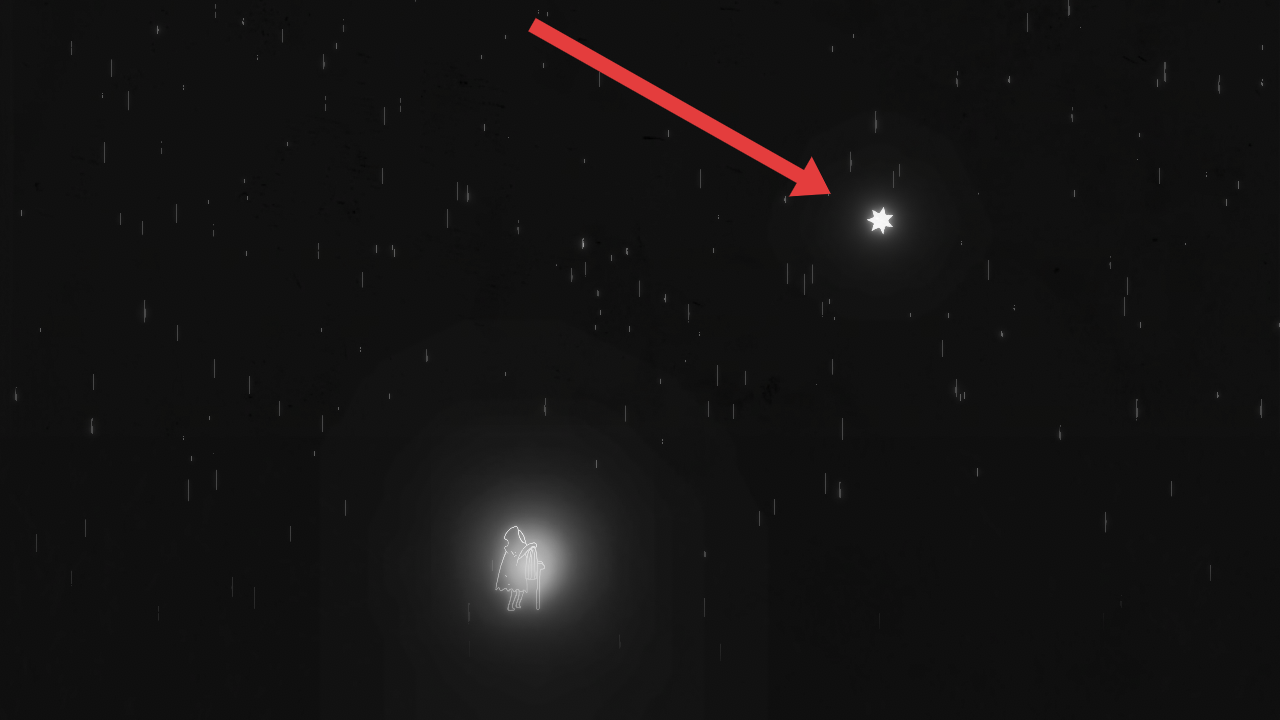 2、星图完成后,重点追踪箭头所指的那处发出橙光的新亮点,根据亮点位置通过滑动屏幕微调角色朝向。