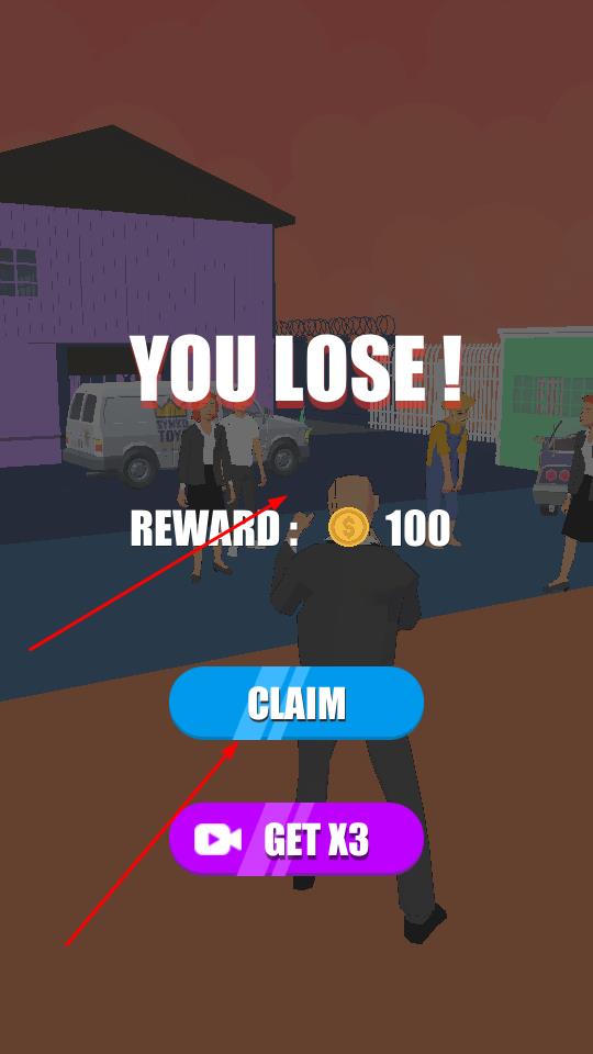 3、若战斗失败,点击CLAIM领取基础奖励,也可选择观看广告,获取三倍奖励收益。