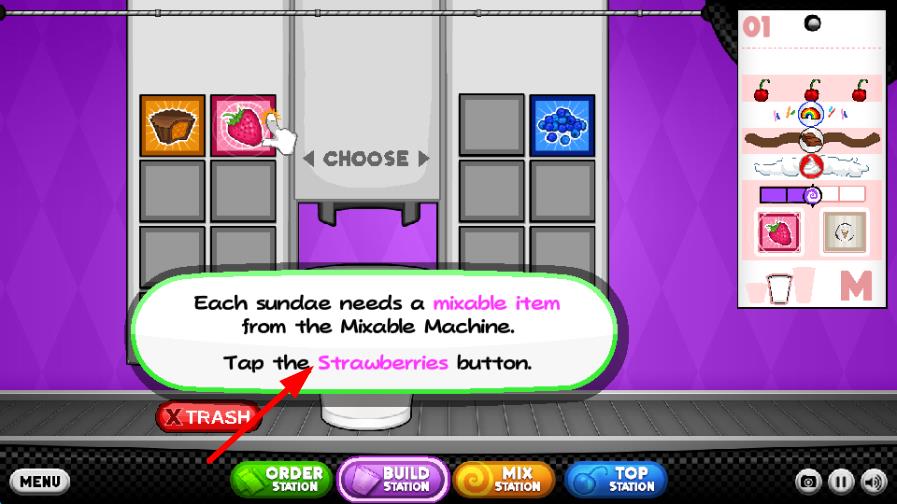 2、随着顾客增多,需根据不同订单要求添加水果、巧克力、坚果等配料,制作多样口味的冰淇淋和冷饮,快速高效地服务以积累更多金币,用于购买新食材。