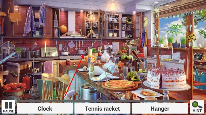 1、进入游戏,在厨房场景中,下方会显示需要寻找的物品名称,仔细观察厨房场景,根据物品名称,寻找对应的物品。