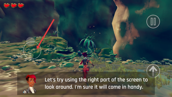 1、按提示,左屏滑动控制角色移动,适应操作后,沿路径探索,留意发光植物、奇异地貌,收集线索。