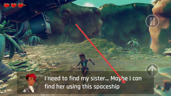 3、靠近飞船时,触发交互,探索内部找线索,同时留意角色血量心形图标,避开危险,持续推进剧情。