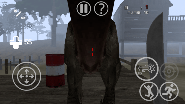 2、街机模式操作:随机开始后需尽快离开,避免恐龙袭击,右上角三角可切换武器,通过射击与灵活躲避应对敌人,考验了快速的反应与操作的能力。