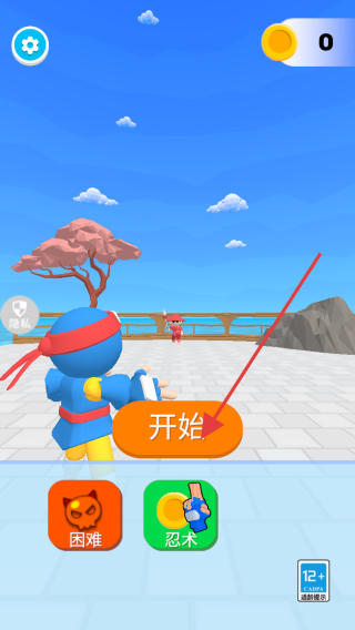 1、点击开始按钮进入游戏,可选择困难模式挑战高难度,也能使用忍术道具助力通关。