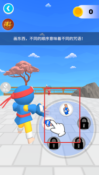 2、进入游戏后,根据提示学习画东西,注意不同的绘画顺序会对应不同的咒语,释放不同效果。